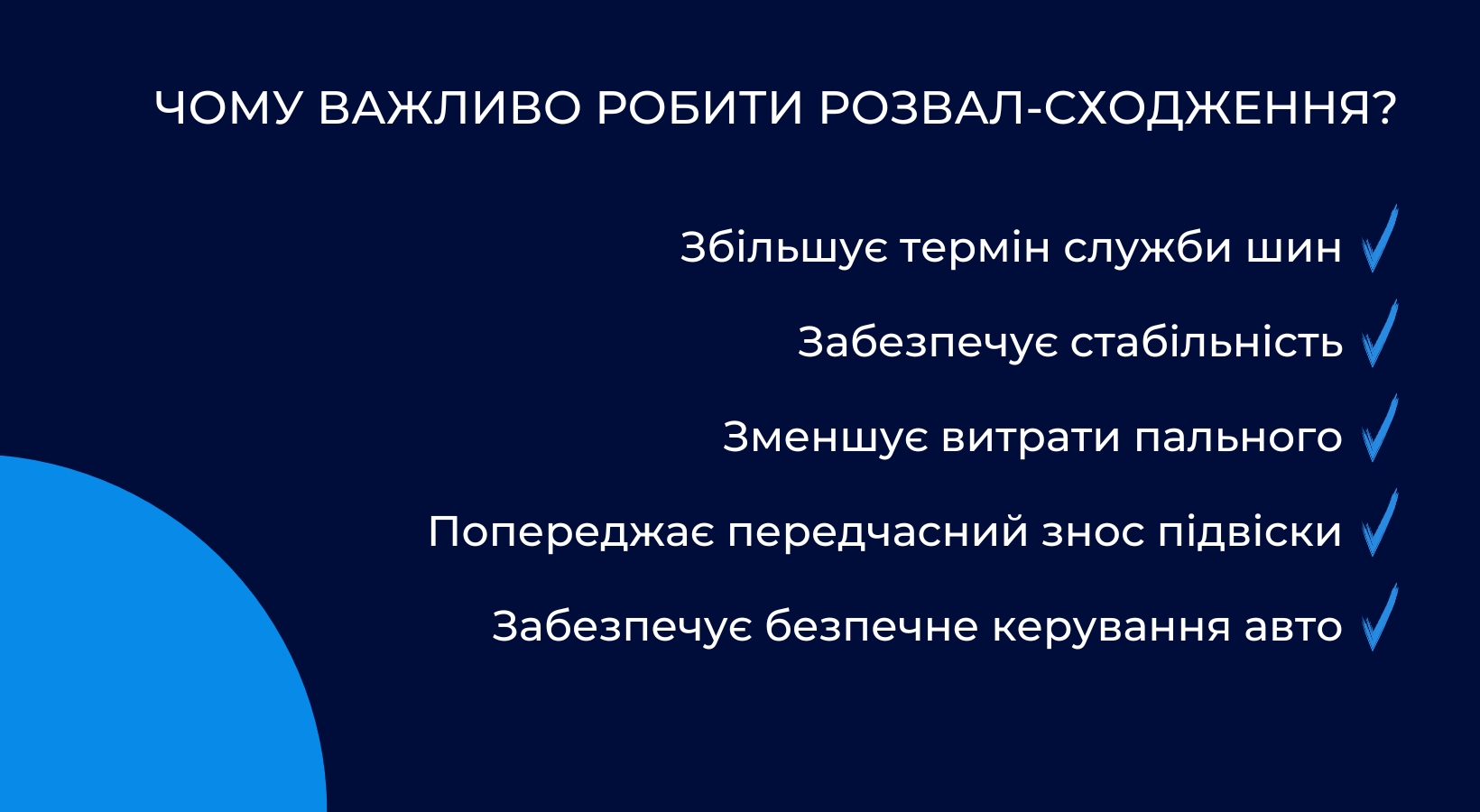 ** Пропозиція діє з 17.11.2025 до 31.12.2025 року. Знижка надається клієнтам, які заїхали на послугу розвал-схождення. Вартість діагностики залишається незмінною при знаходженні недоліків в ходовій частині авто.