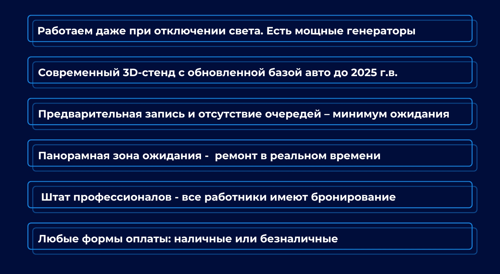 Мы используем новейший 3D-стенд с двумя камерами и механическим лифтом, который обеспечивает: